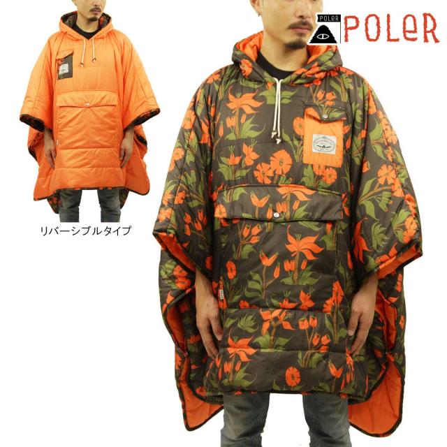 ポーラー ポンチョ 正規販売店 POLER アウトドア リバーシブル キャンプポンチョ THE REVERSIBLE CAMP PONCHO 221ACU5601 ORCHID FLORAL BLACK