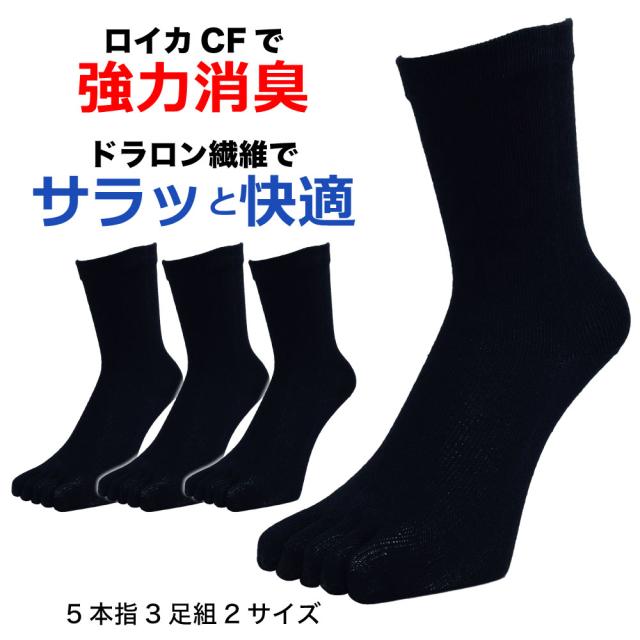 五本指靴下 メンズ ゆったり ゴムなし 履き口ゆったり ロイカCF 消臭 吸汗速乾 ドラロン クルー丈 3足セット 日本製 25cm-27cm/27cm-29cm