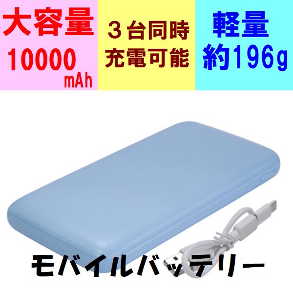 モバイルバッテリー 10000mAh PSE認証済 急速充電 大容量/軽量/薄型 microUSB/タイプC 青 ネコポス送料無料