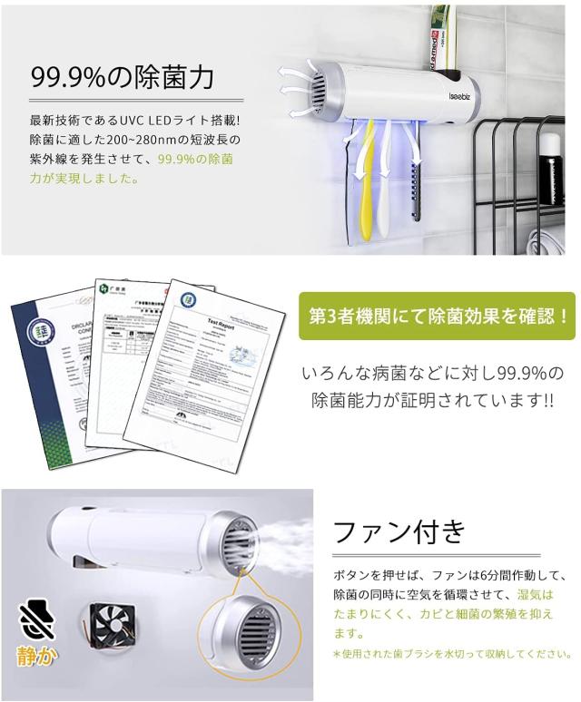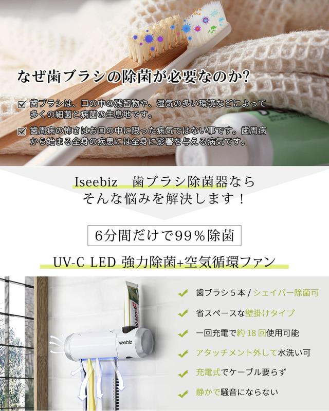 歯ブラシ除菌器 歯ブラシ除菌装置 UV除菌 空気循環 壁掛け式 カビ防止 歯ブラシ収納ホルダー ASK-160