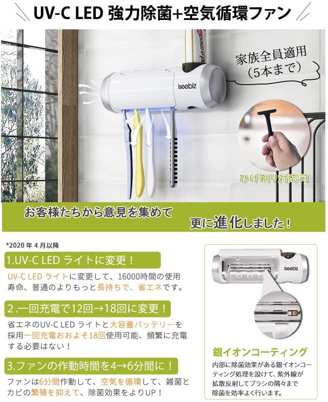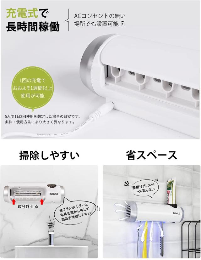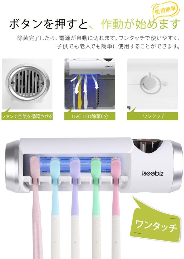 歯ブラシ5本まで同時対応できます(ネック幅8mm以内対応可なので、電動ブラシとひげ剃りも対応できます)家族全員で使用できて、家族の口の健康を完璧に守ります。