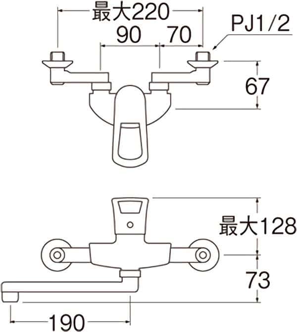 | 仕様・特長 | ●JIS品 ●節水効果のある水栓です。 ●節水コア付 ●取付芯ピッチ:最大220mm |