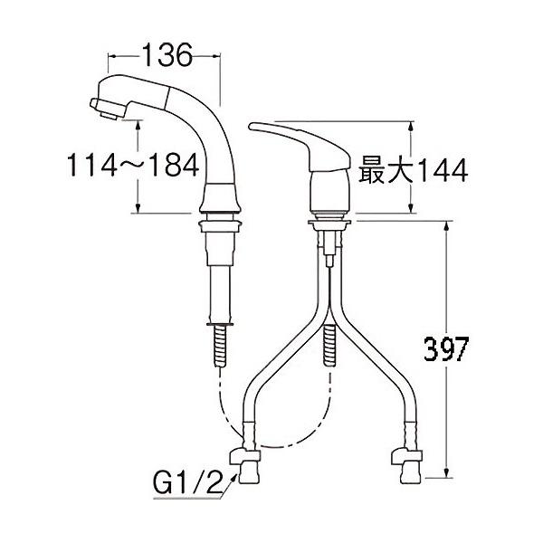 | 仕様・特長 | ●JIS品 ●日本バルブ工業会の環境配慮バルブ登録制度に登録した商品です ●節水効果のある水栓です。 ●吐水口は引出し式です。 ●吐水は整流とシャワーに切替えてご使用いただけます。 ●ハンドル、レバーに格段に使用感を向上させるクリック機構を採用しています。 ●お湯の出ない位置が「カチッ」とわかる「エコ位置クリック」でスマートにお湯のムダづかいを防げます。 ●取付施工は一般的なナット式を採用 ●給水接続はフレキホースとクイックファスナーで接続するタイプなので簡単でしっかりと接続できます。 ●水受バケット(H770-88)をご使用ください。 ●引出しホース長さ:1m ●取付足の径:35mm ●取付穴径(2ヵ所):36〜38mm ●取付可能天板厚:5〜15mm ●取付ロックナット対辺:レバー側38mm 、スプレー側46mm ●スプレー高さ:114〜184mm ●節湯:C1 |
