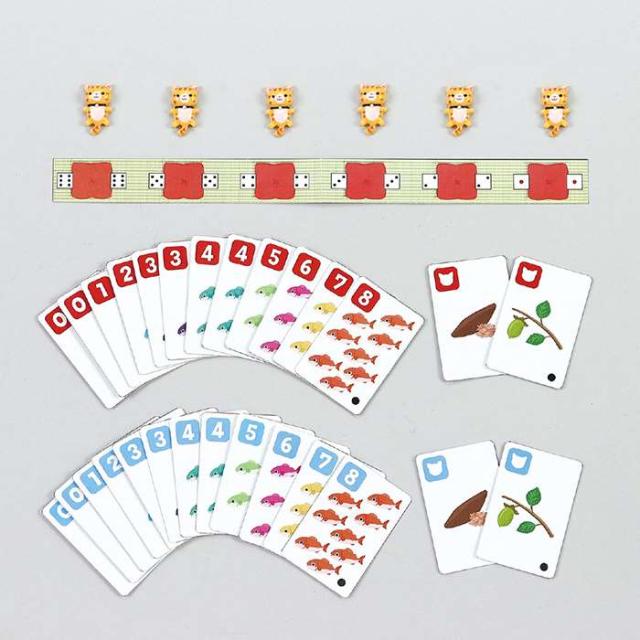 ■セット内容:猫フィギュア6体、魚カード28枚、座布団カード1枚、サイコロ1個、説明書1枚