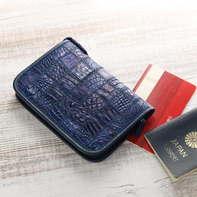 クロコダイル 通帳ケース お薬手帳 カバー カードケース マルチケース パッチワーク マット 加工 4FA(06001654-mens-1r)