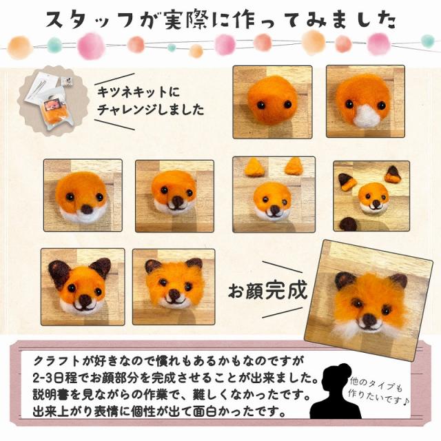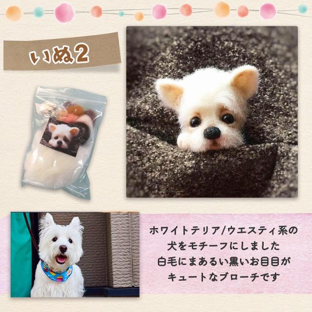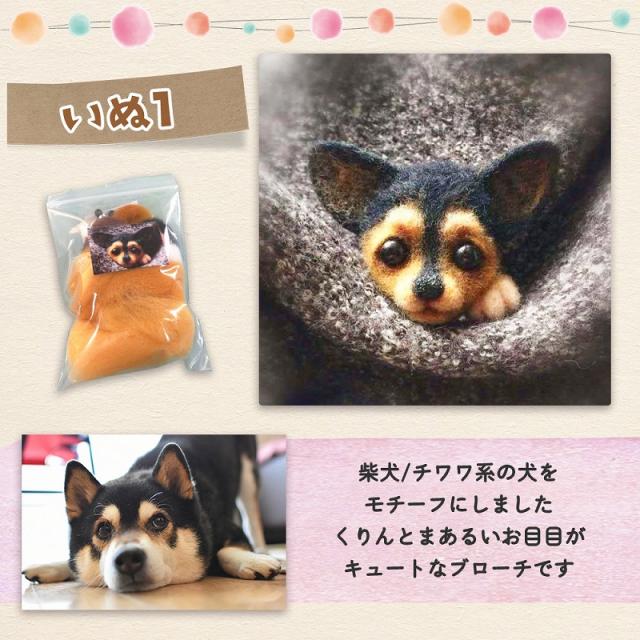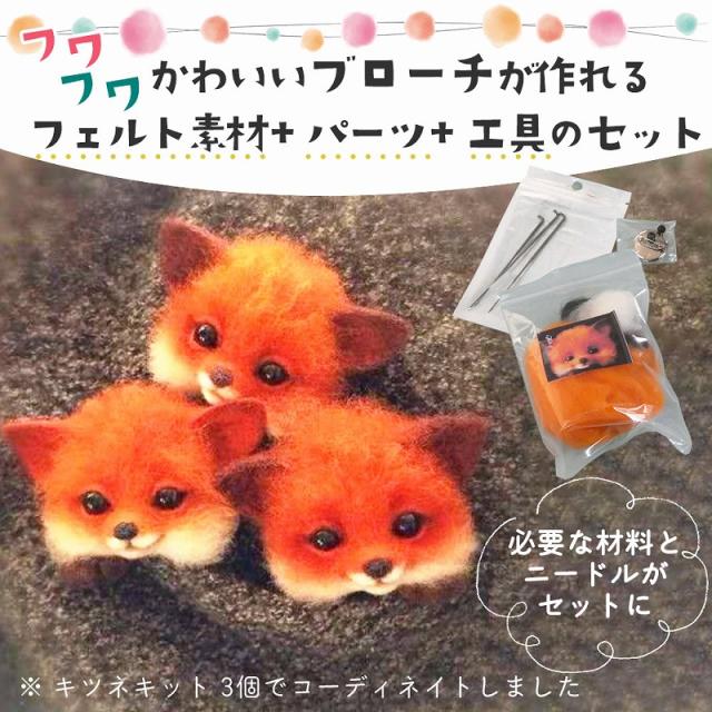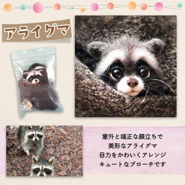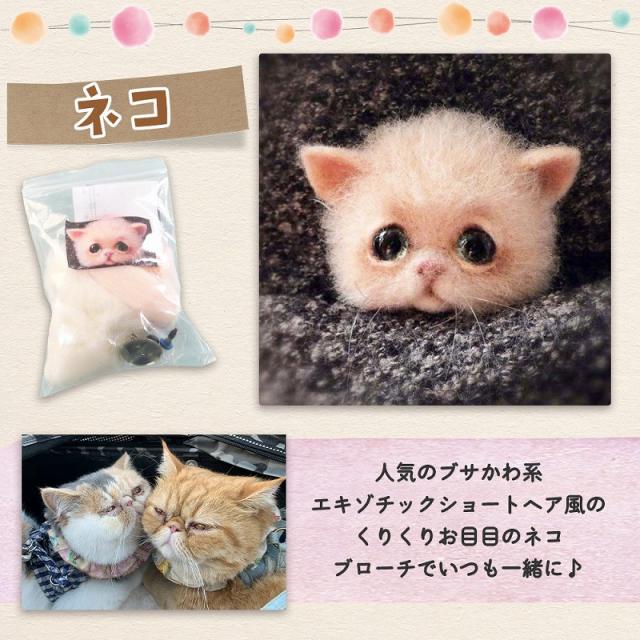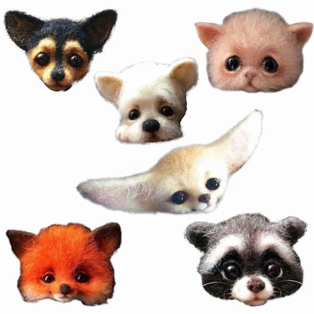 羊毛フェルト キット どうぶつ 6種類 セット 羊毛 フェルト ニードル ブローチ ハンドメイド おうち時間 ウール 手芸 きつね ネコ フェネック アライグマ イヌ agesugi_snk