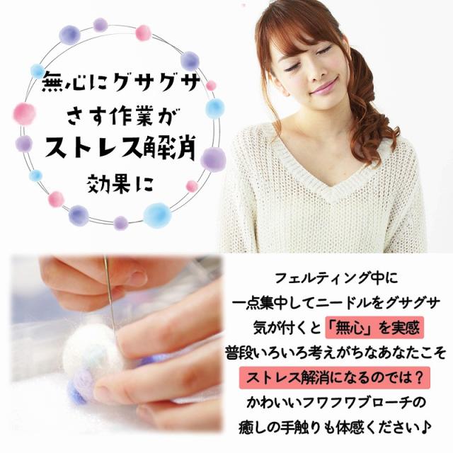 手触りやさしく癒されると人気、羊毛フェルトブローチキット