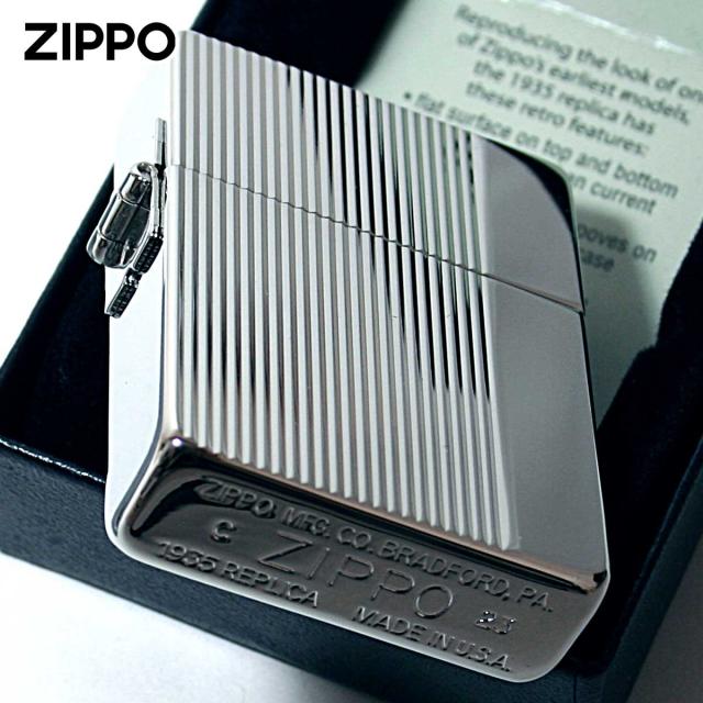 1935年当時の形状を再現した1935レプリカモデルのZippoです。3バレル外ヒンジ、フリントホイール部の中空リベット。耐風ライターとして認知され始めていた1935年当時の面影そのままに。深彫のカットライン加工が施されております。シンプルながらも、コダワリある仕上がりです。プレゼントにオススメ!