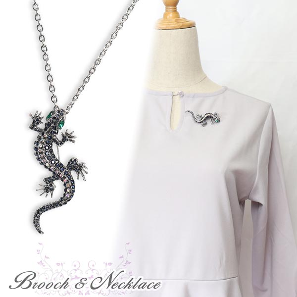 ブローチ ネックレス 2WAY トカゲ ヤモリ 爬虫類 カナヘビ ペンダント バッヂ コサージュ ジュエリー ビジュー 宝石 かわいい ユニーク 送料無料