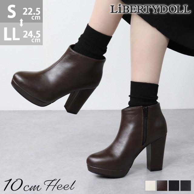 ブーツ レディース ショート 厚底 10cmヒール ハイヒール 靴 太ヒール ブーティー ショート 22.5cm〜24.5cm 黒 ブラック LiBERTYDOLL リバティードール No.9023