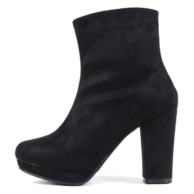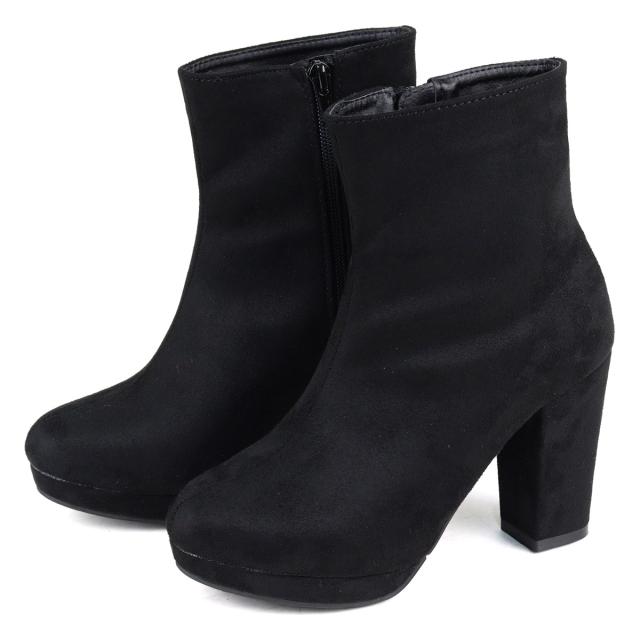 ブーツ レディース ハイヒール 厚底 サイドジップ チャンキーヒール 太ヒール ブーティー ショート 10cmヒール No.9024 22.5cm〜24.5cm 黒 ブラック LiBERTYDOLL リバティードール