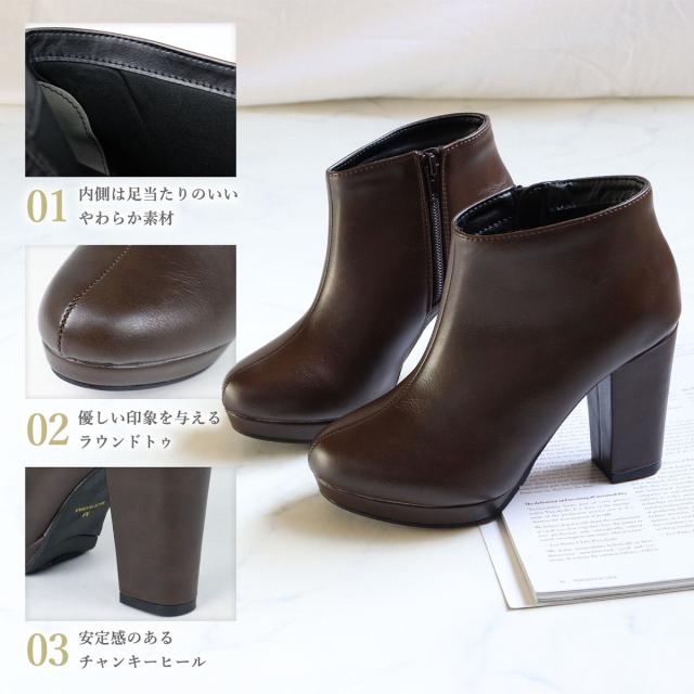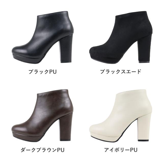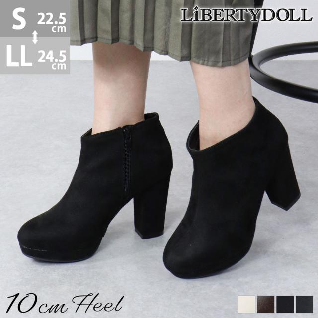 ブーツ レディース ハイヒール 厚底 10cmヒール 太ヒール ブーティー ショート No.9023 22.5-24.5cm LiBERTYDOLL リバティードール 靴 ショーツブーツ 履きやすい ラウンドトゥ ブーティー おしゃれ 痛くない