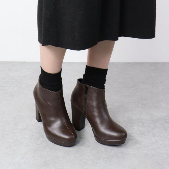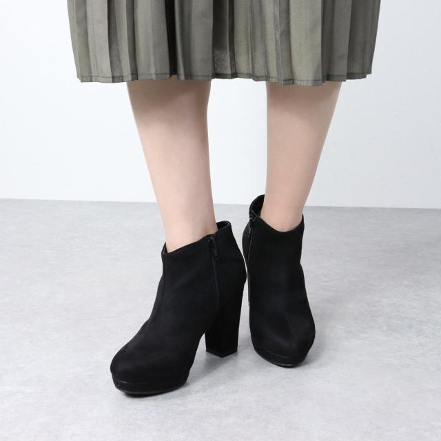 約10cmのヒールで履くだけでスタイルアップできるショートブーツ。