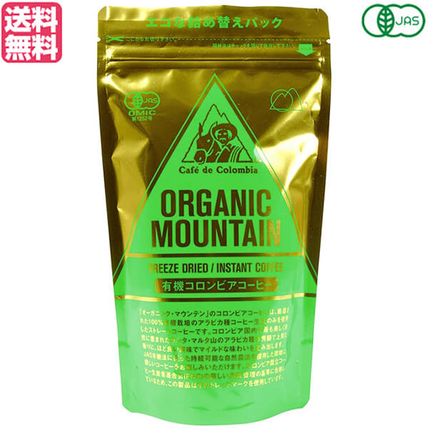 【超BIGラリー!ポイント最大+16%!】オーガニック コーヒー インスタント オーガニックマウンテン 有機インスタントコーヒー 80g 詰め替え コロンビアコーヒー 送料無料