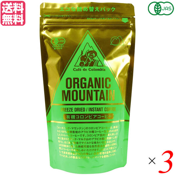 【3/16(月)9:59迄!ポイント5%+日曜5%】オーガニック コーヒー インスタント オーガニックマウンテン 有機インスタントコーヒー 80g 詰め替え コロンビアコーヒー 3個セット 送料無料