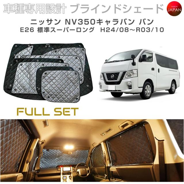 ニッサン NV350キャラバン バン 標準スーパーロング nv350 dx ブラインドシェード フルセット アクセサリー パーツ 内装 車 日よけ サンシェード 車種別専用設計 BRAHMS 断熱 保温 断冷 目隠し 防犯対策 車中泊 車中テレワーク カーテン 着替え 日本製 UVカット B2-028-C