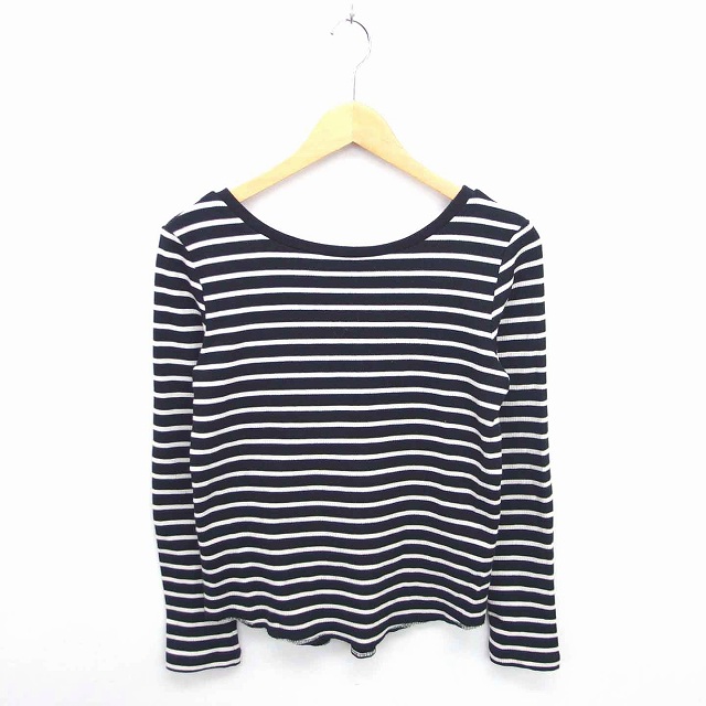 【中古】チャオパニック ティピー カットソー ニット ボーダー ボートネック 薄手 長袖 ONE ブラック アイボリー 黒