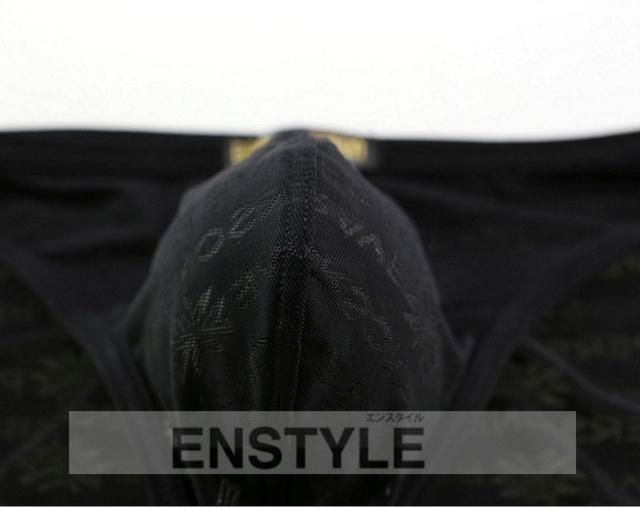 とても斬新なデザインです。メーカーのロゴの英文字がメッシュのようにパンツ一面に浮き出て、体の部分が明るく透けて見えます。フロント部分はもっこりしていて、このデザインの透け感ともっこり感から、履いていてじわっと喜びを感じるパンツです。