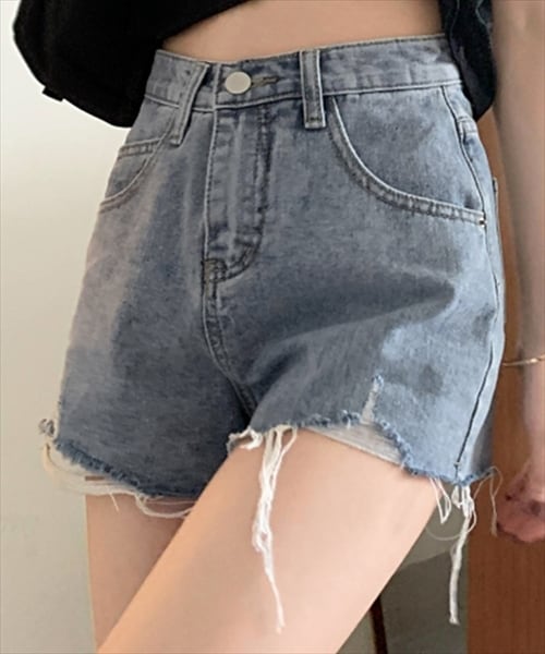 テディショップ(TeddyShop)/レディース ヴィンテージ風ハイウエストショートダメージデニムパンツ