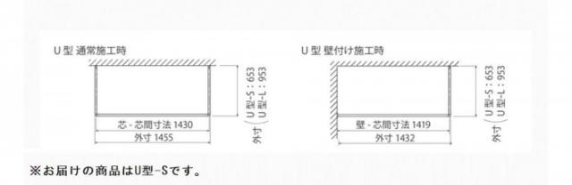 | サイズ | 通常施工時:外寸:W1455(芯〜芯間寸法:1430mm)×H653mm、壁付け施工時:外寸:W1432(壁〜芯間寸法:1419mm)×H653mm 個装サイズ:9×142.5×7cm |