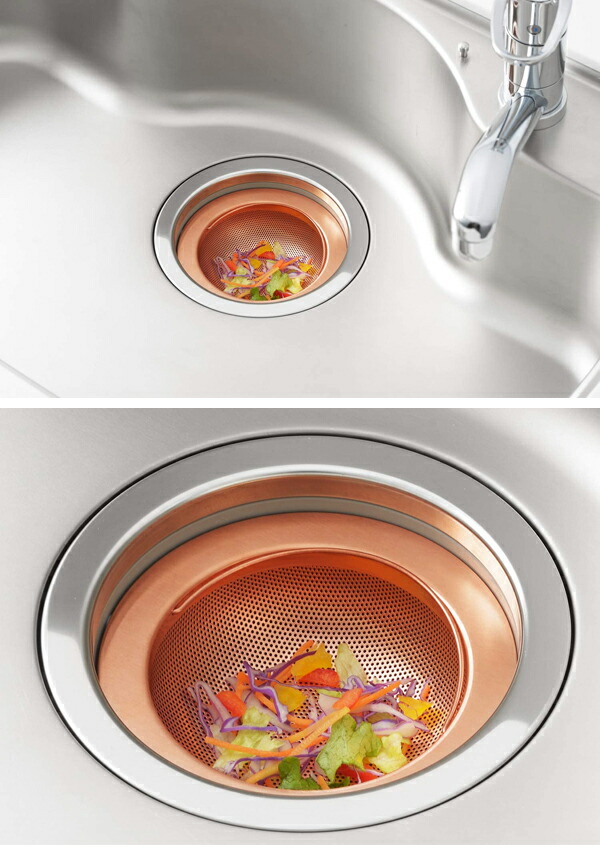 ●お手入れしやすいパンチングゴミ受け。 ●銅の効果でヌメリやニオイを抑える。 ●銅はぬめりと臭いをおさえる。 ●お手入れしやすいパンチング材を使用。 ●細かなパンチング穴で、ゴミの流出をおさえる。 |
