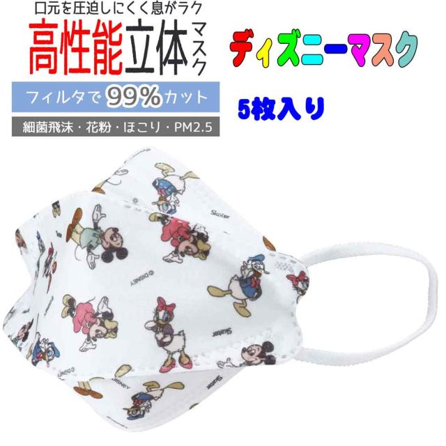 立体マスク 5枚入り ディズニー柄 ミッキーマウス ミニーマウス 口元空間 立体 不織布 三層構造 マスク 小さめ 子供用 小学校 学校給食 保育園 幼稚園