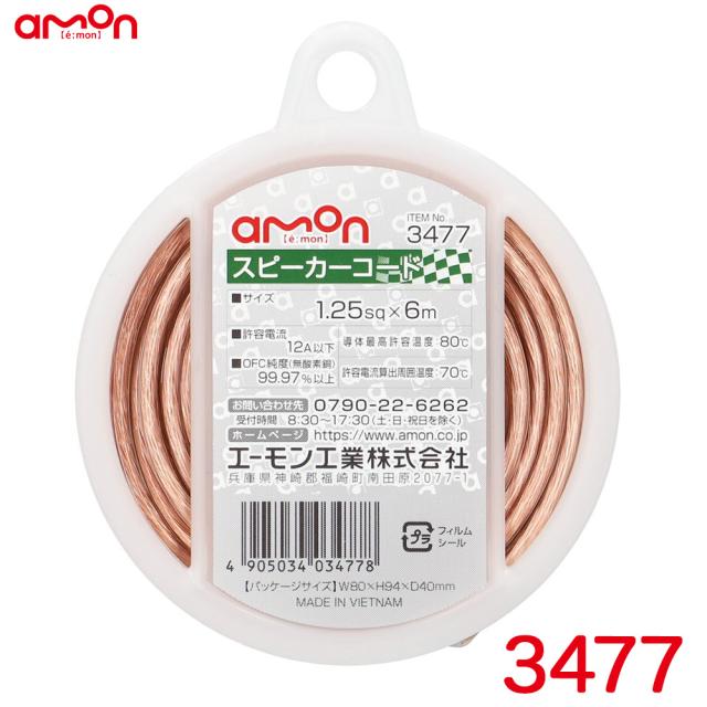 エーモン/amon スピーカーコード 1.25sq 6m OFC純度99.97%以上 配線コード 許容電流12A以下 3477