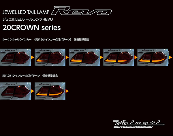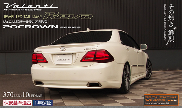 ヴァレンティ ジュエル LEDテール REVO シーケンシャル ライトスモーク/ブラッククローム 200系 クラウン H20.2〜H24.12 TT20CRW-SB-1