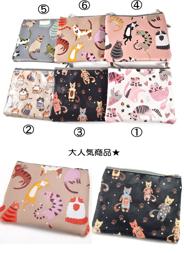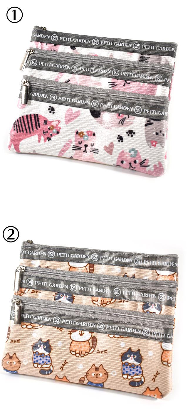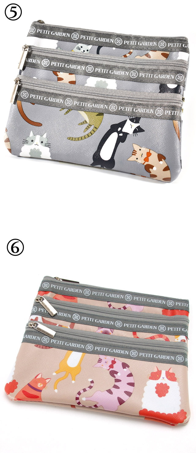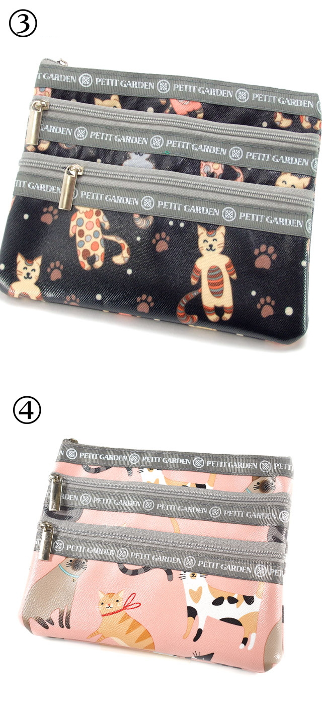仕分けに便利な 可愛いネコ柄 3連ファスナーポーチ です。