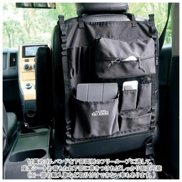 | 商品説明 | ・吊り下げ収納でスッキリ片付く♪POST GENERAL(ポストジェネラル)のハンギングオーガナイザー。 ・上部4箇所に付いているハンキングパーツ(バックルベルト)を使って吊るすだけ◎カチッと留めるだけなので、移動もラクラク。 ・リビングやデスク回りでウォールポケットとして使える、マルチユースなサイズ感。 ・ペン挿し×4、ファスナー式のティッシュポケット×1、サイズの異なるオープンポケット×4付きで、散らばる小物を整理整頓できる。 ・サイドにはお手持ちのS字フックなどを掛けられる、18ヶ所のフリーループを装備。 ・車の座席シート背面にもハンキングOK!付属のゴムバンドを下部両側のフリーループに通して、座席シートの背もたれ下部に巻きつければしっかり固定可能。(※ヘッドレストのない車や、一部の輸入車など取り付けできない車もあります。) ・狭い場所でも空間を有効活用できちゃう収納アイテム♪ |