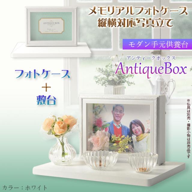 仏具【フォトケース写真立て 縦横対応:敷台付きアンティークボックス ホワイト】送料無料 手元供養 骨壷 遺品 遺髪 オープン仏壇 ミニ仏壇