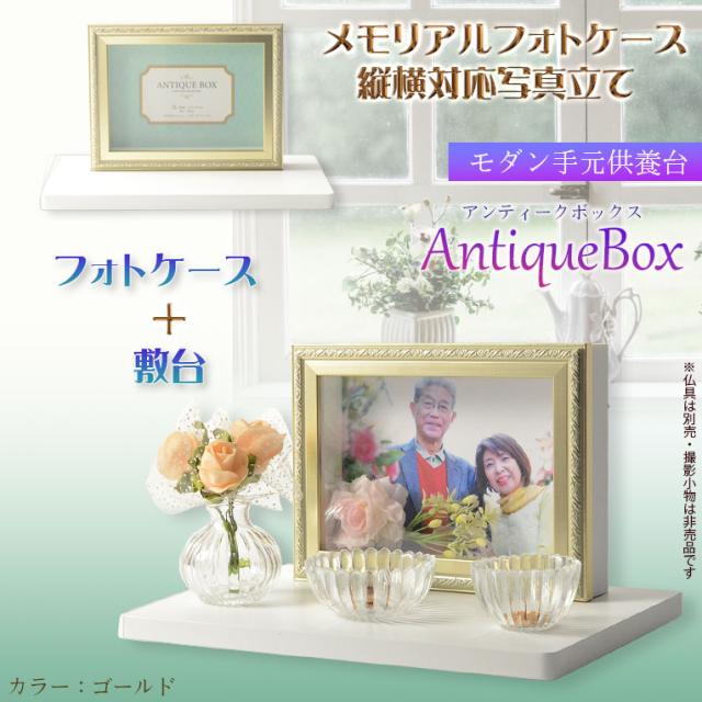仏具【フォトケース写真立て 縦横対応:敷台付きアンティークボックス ゴールド】送料無料 手元供養 骨壷 遺品 遺髪 オープン仏壇 ミニ仏壇