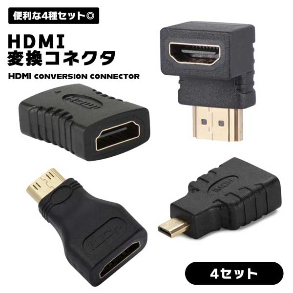 HDMI 変換コネクタ 4セット 変換 接続 mini HDMI micro HDMI L型 延長 タイプC タイプA オス メス サビ防止 金メッキ 全対応 コネクター