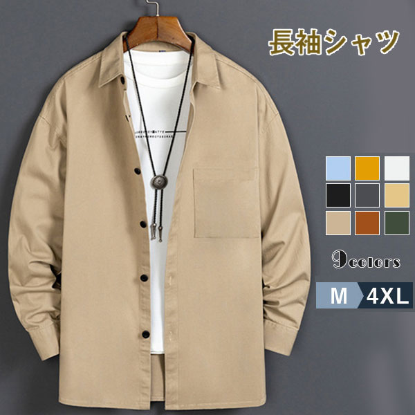 ポイント超超祭 メンズ シャツ 長袖 無地 カジュアルシャツ 開襟シャツ カラフル アウター ベーシック シンプル 速乾 秋服 アウター おしゃれ 紳士服 父の日