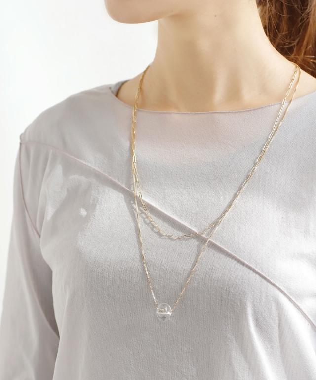クリアストーンのモチーフが程よい存在感を放ち、顔周りをこなれた印象へと導いてくれるネックレス。