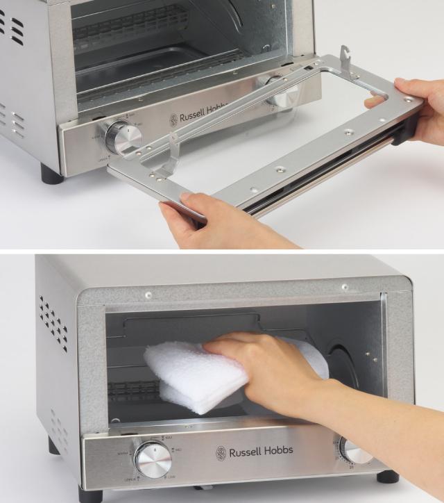 扉が簡単に取り外せるので、トースター内のお手入れもラクラク。隅々まで拭き掃除ができキレイを保ち、いつでも衛生的に使えます。