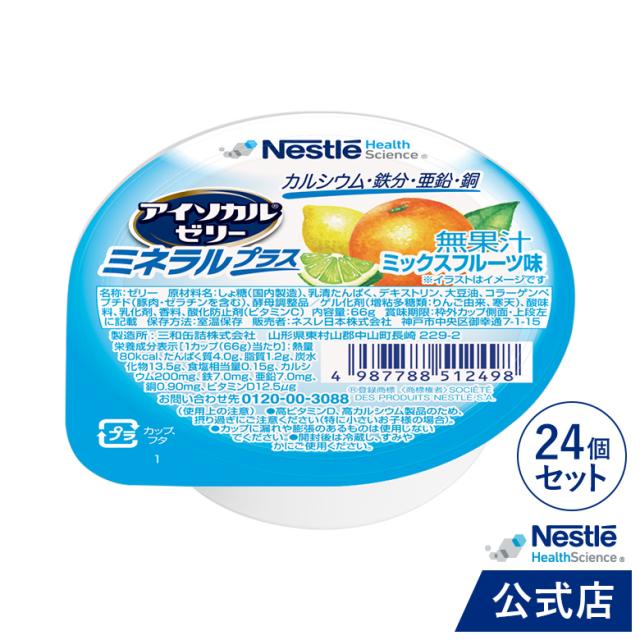 アイソカル ゼリー ミネラルプラス ミックスフルーツ味 24個セット【NHS ネスレ ゼリー デザート カップゼリー ミネラル たんぱく質 ビタミンD カルシウム 銅 亜鉛 鉄分 ビタミン 健康食品 介護 介護食 栄養 栄養補助食品 PCF】