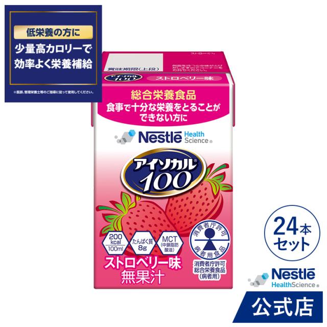 アイソカル 100 ストロベリー味 100ml × 24パック【アイソカル ネスレ リソース ペムパル isocal バランス栄養 栄養補助食品 栄養食品 健康食品 高齢者 たんぱく質 カロリー エネルギー 介護 介護用品 ミニカップ MCT ioh3】