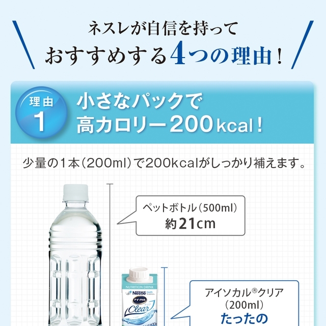 熱量: 200kcal/200ml (1.0kcal/ml)