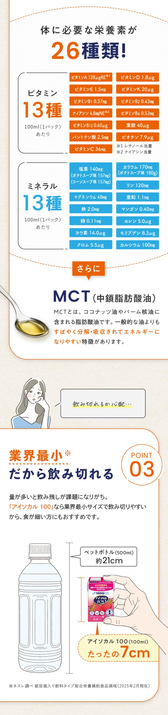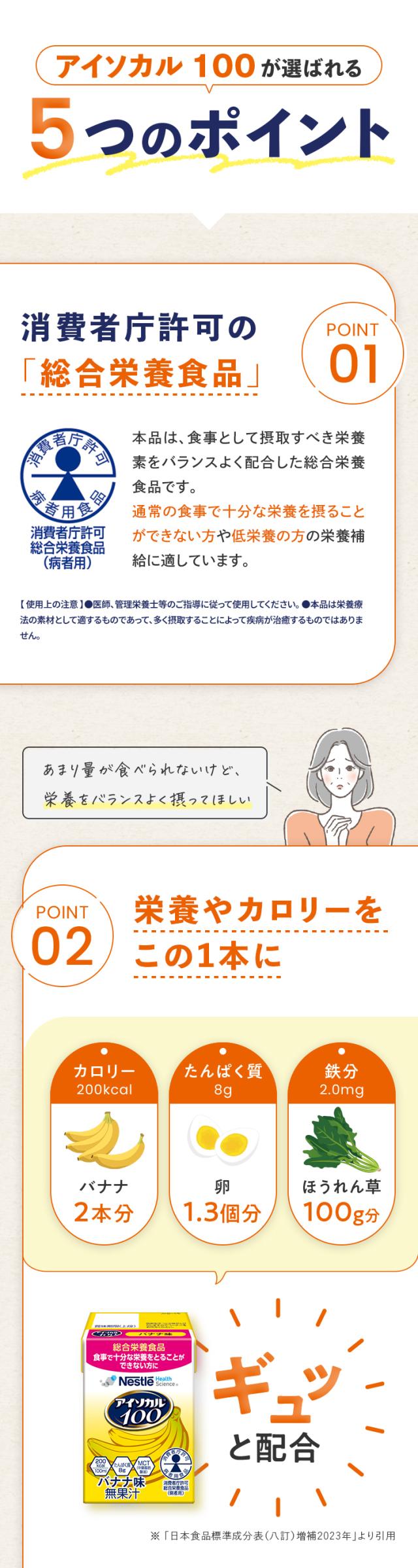 大事な栄養素が一度で手軽にとれる。おいしく、たんぱく質とカロリーを補給。