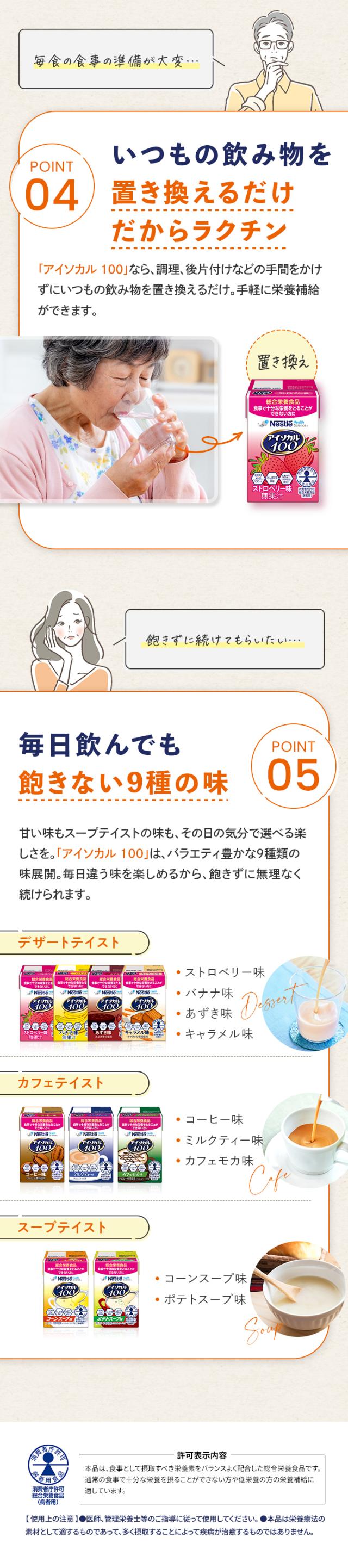 - 偏食で水分をあまり摂らない高齢の母が、これは「美味しい」と飲んでくれます。色々病気はあるけどそれなりに元気なのはアイソカルのおかげかなと思っています。