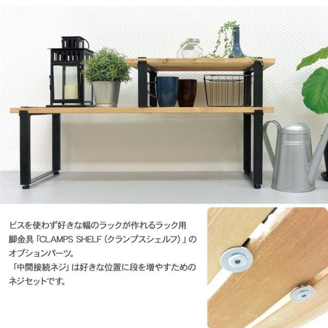 商品説明:ビスを使わず好きな幅のラックが作れるラック用脚金具「CLAMPS SHELF(クランプスシェルフ)」のオプションパーツ。