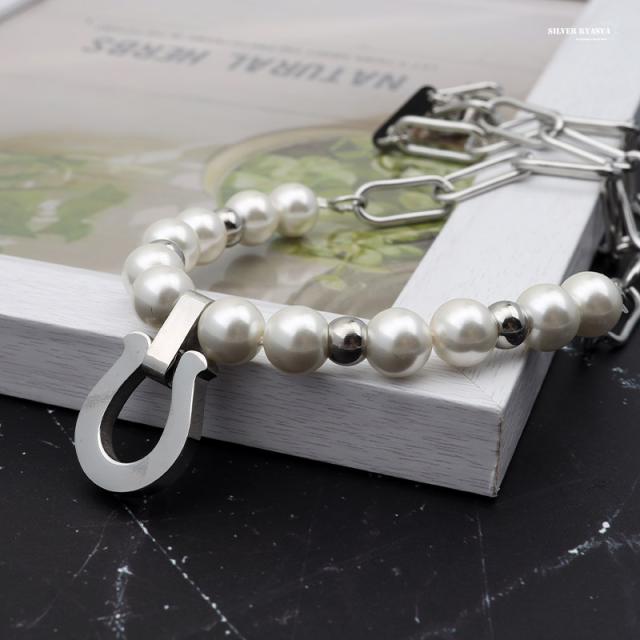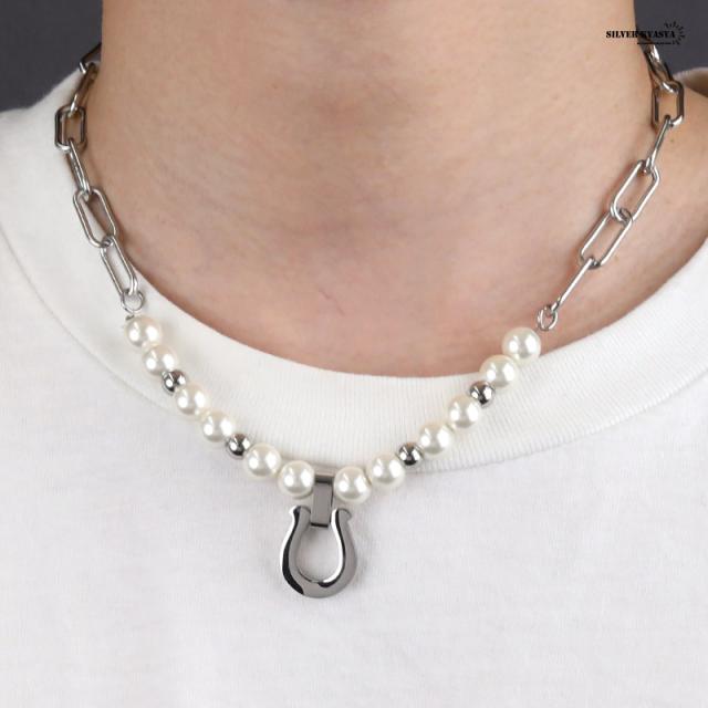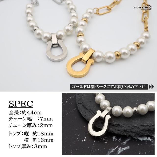 ネックレスkyasya(シルバーキャシャ)オリジナル ホースシュー 馬蹄 あずきチェーン ハンドメイド pearl 銀色 ステンレス アレルギーフリー 専用BOX付属