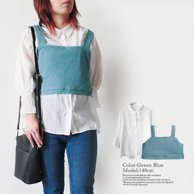 - 値段がめちゃくちゃ安くて、普通に可愛かったので、グレーを購入しました。シャツは一度、洗濯したらシワだらけになり、着ないかもですが、ビスチェは他の服と合わせて着れるし、可愛いです。
