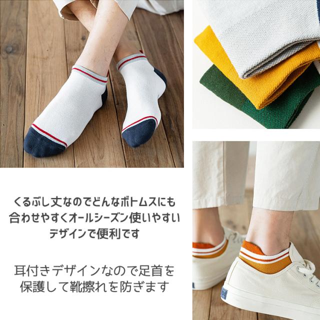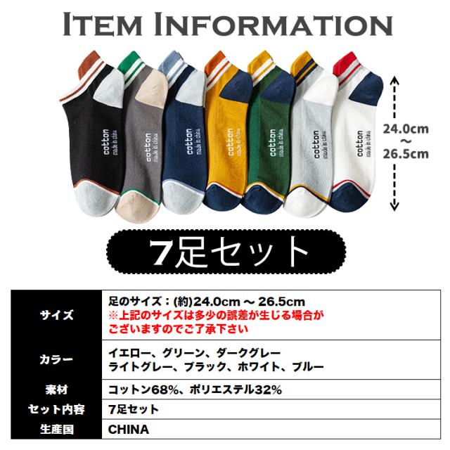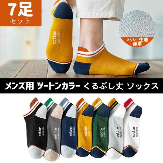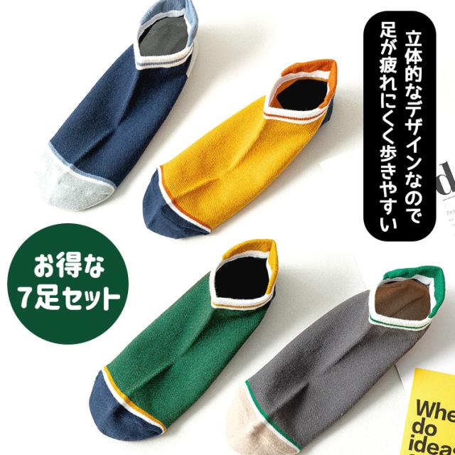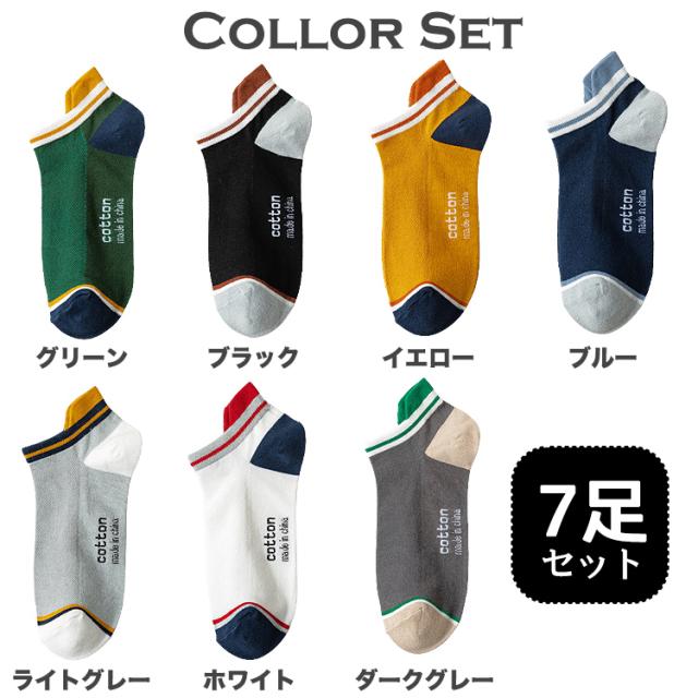 靴下 メンズ くるぶし ライン ツートン ソックス 7足セット バイカラー くつ下 くるぶし丈 ショートソックス ショート おしゃれ 男性 ブラック イエロー ダークグレー グリーン ホワイト ブルー ライトグレー