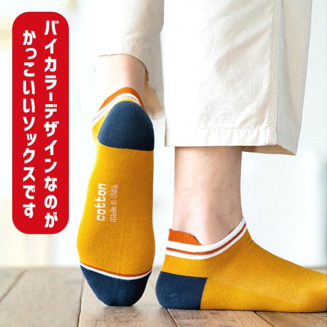 バイカラーのデザインがおしゃれでかっこいいくるぶし丈ソックスです