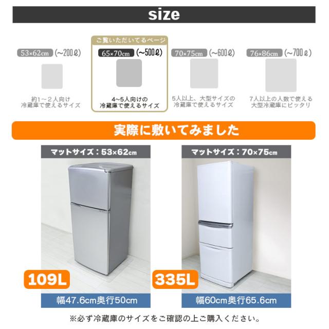 PVCクリア冷蔵庫マット65×70 抗菌 抗カビ 65×70cm キッチン フロア 傷防止 床 北欧 秋 冬 クリア 透明 凹み