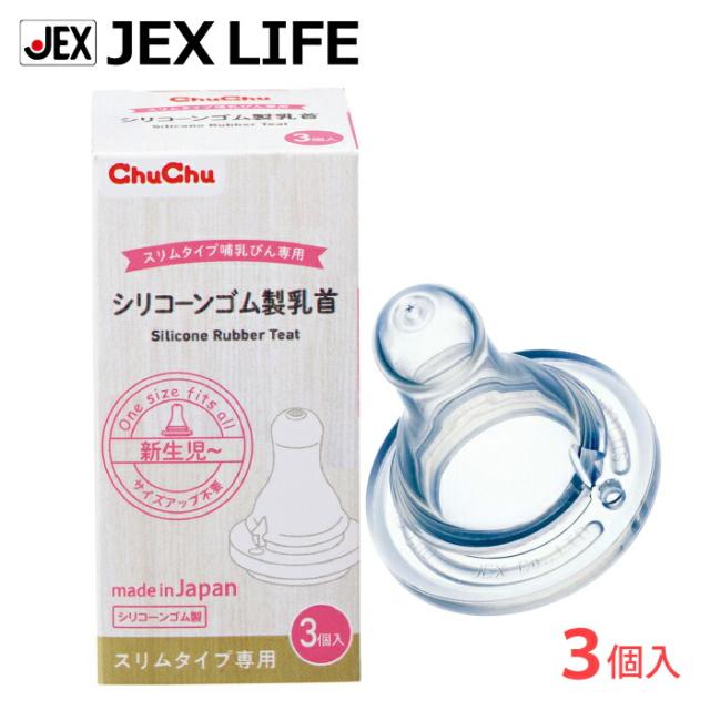 ジェクス チュチュ スリムタイプ シリコーンゴム製乳首 3コ入 日本製 新生児から卒乳頃用 サイズアップ不要 ChuChu メーカー直営