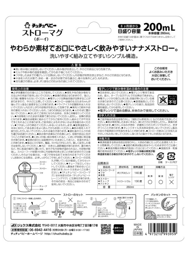 商品名:チュチュベビー ストローマグ ボーイ STRAW MUG 260ml 日本製