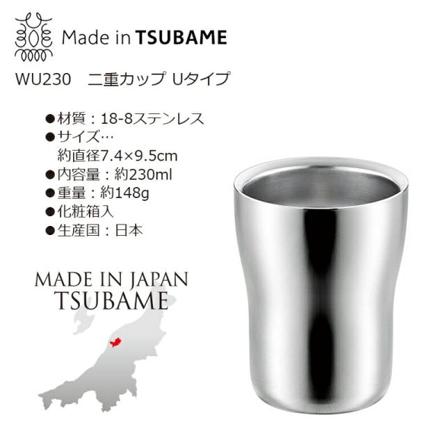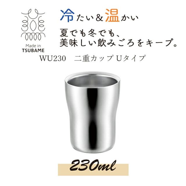 【贈り物にもおすすめ★】WU230 二重カップ Uタイプ 230ml FM-109 燕三条 日本製 新潟 燕市 保温 保冷 おしゃれ コーヒー クリスマス プレゼント ギフト 洗いやすい オフィス かわいい ビール ホワイトデー よこやま
